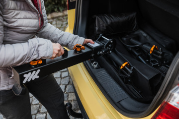 Jakmile máte kola správně upevněna, nasaďte SPZ, zapojte 13-pin zástrčku a můžete vyrazit. Na podložkuSPZ tlačí tuhá pružina, takže se nemusíte bát stability.